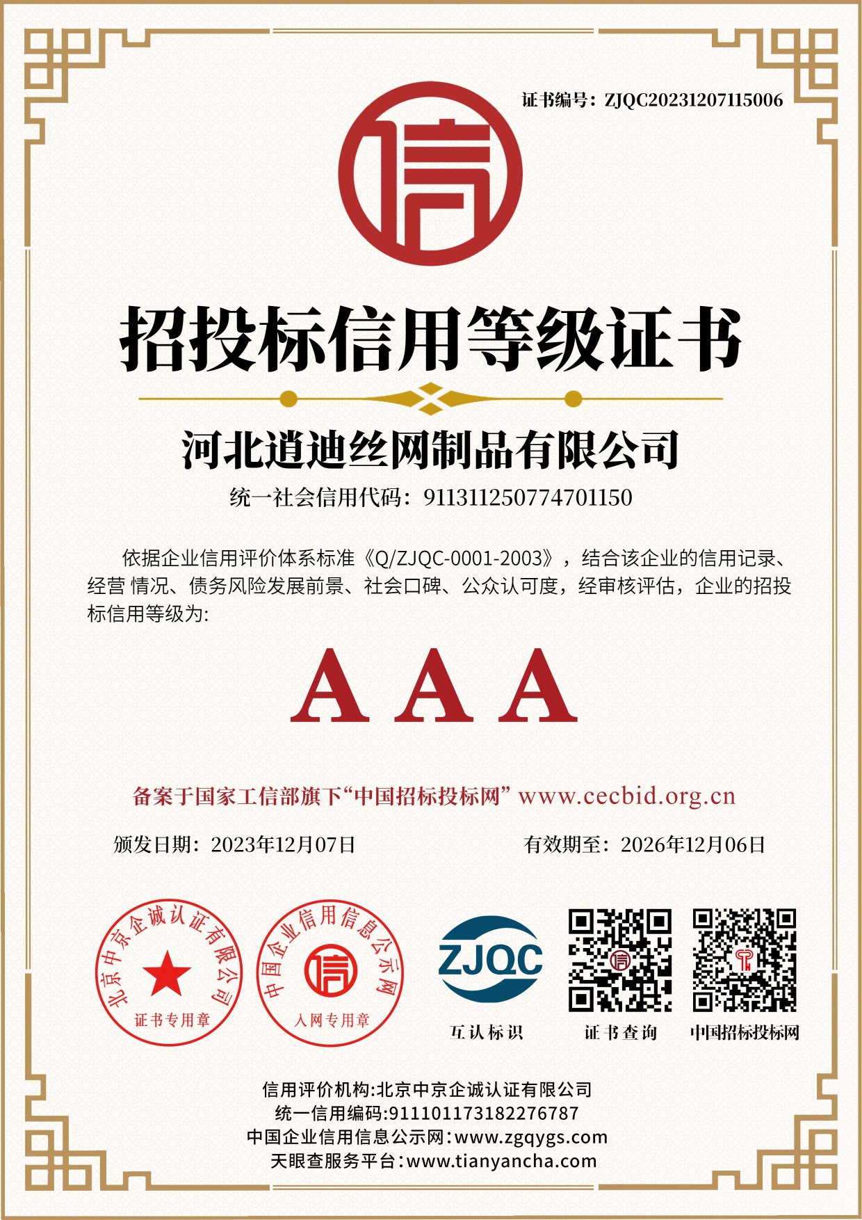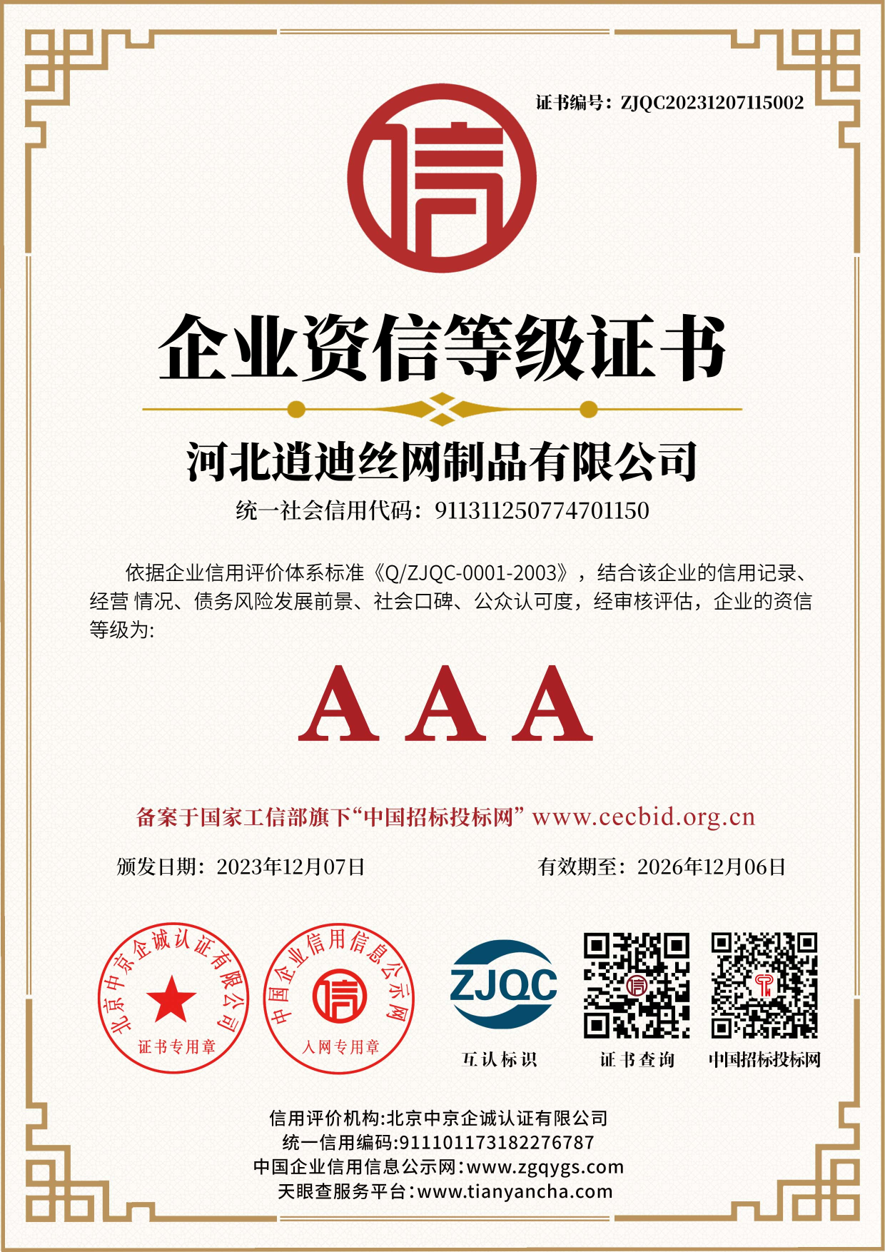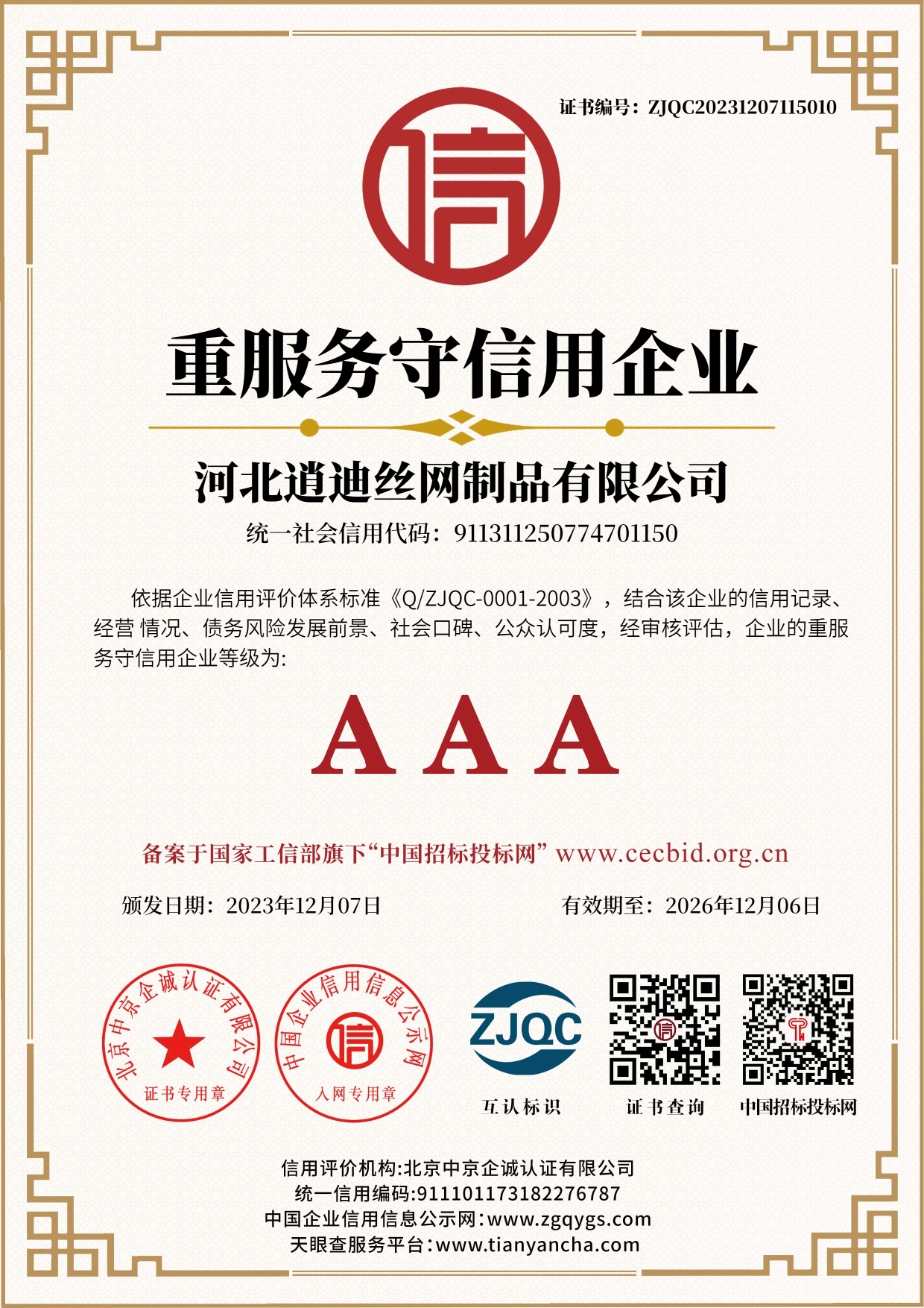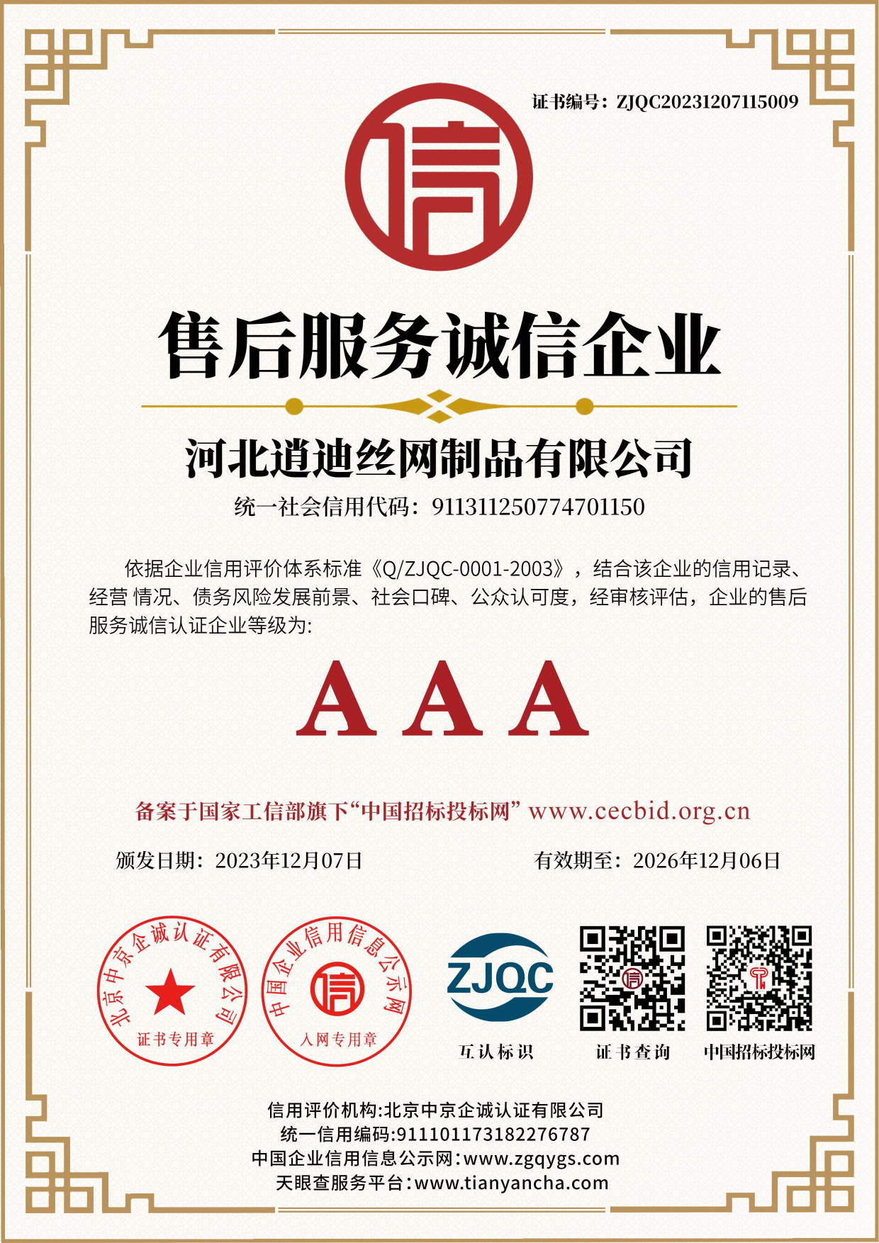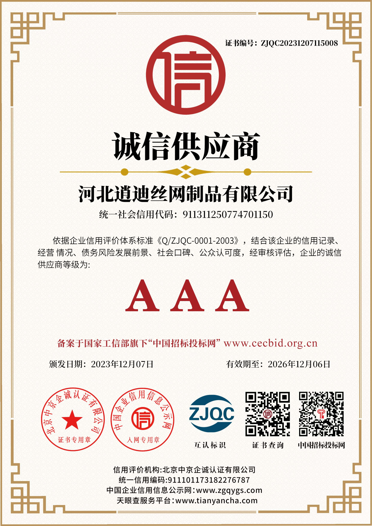 河北逍迪絲網制品有限公司是長期專注于絲網制品生產領域。本公司倡導“專業、務實、高效、創新”的企業精神,具有良好的內部機制,優良的工作環境以及良好的激勵機制,吸引了一批高素質、高水平、高效率的人才。公司擁有完善的技術研發力量和成熟的售后服務團隊。